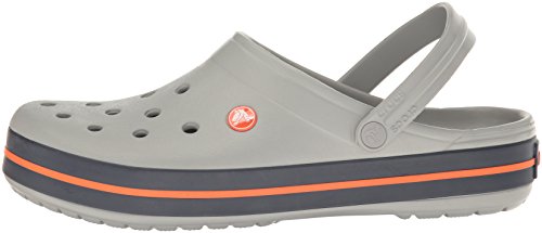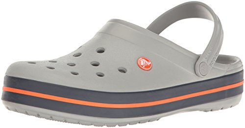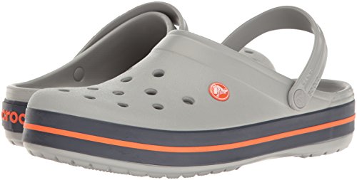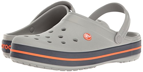 crocs Unisex Crocband Clog, Light Grey/Navy, 13 US Men / 15 US Women