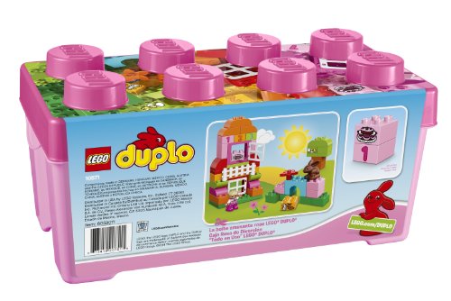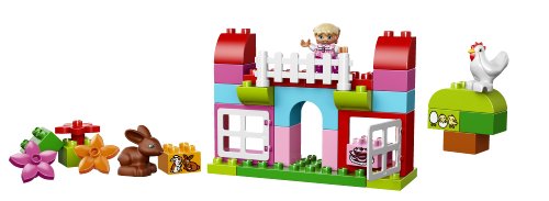 -. Binding : Toy -. Brand : LEGO DUPLO Creative Play -. Color : pink -. EAN : 0885177082932 -. Feature : Includes a girl LEGO DUPLO figure / Also includes a bunny, hen, numbered bricks with corresponding decorated bricks and other assorted DUPLO bricks / Match the numbered bricks with the decorated bricks of the same color / LEGO brick-shaped box makes a great, iconic storage solution; LEGO DUPLO products are fun and safe for younger hands / House measures over 5" high, 3" wide and 1" deep; Bunny stands over 1" tall; Girl stands over 1" tall -. IsAdultProduct : 0 -. ItemPartNumber : 6059071 -. Label : LEGO -. Manufacturer : LEGO -. Model : 6059071 -. MPN : 6059071 -. PackageQuantity : 1 -. PartNumber : 6059071 -. ProductGroup : Toy -. ProductTypeName : TOYS_AND_GAMES -. Publisher : LEGO -. ReleaseDate : 2014-03-01 -. Studio : LEGO -. Title : LEGO DUPLO Creative Play 10571 All-in-One-Pink-Box-of-Fun -. UPC : 673419207515 -. Warranty : No Warranty