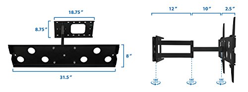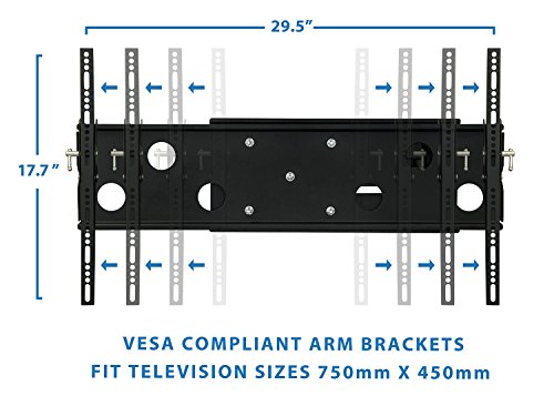 -. Feature : This wall mounting kit is compatible with Samsung, Sony, LG, Sharp, Insignia, Vizio, Haier, Toshiba, Sharp, Element, TCL, Westinghouse 32, 36, 37, 40, 42, 47, 48, 49, 50, 52, 55, 60 inch TVs. / Universal TV wall mounting bracket design fits most of 32-60" LCD/LED/Plasma TVs on the market (even up to some 75 inch TVs) up to VESA 750x450 and 175lbs (Fits VESA 750x450, 750x400, 700x400, 600x400, 600x300, 600x200, 400X400, 400X300, 400X200, 300X300, 300X200, 200X200, 200X100 mm). Please check VESA (mounting hole pattern behind TV), stud spacing, possible blocked cable/input and TV weight P.R.Ior to making purchase decision to determine whether this TV wall mount fits your TV and the installation application. / Tilt, Swivel, Articulate, Extend, Collapse with this universal TV wall mounting bracket. Full motion capability makes is ideal for corner installation, over a fireplace, inside a TV center, on any wall with up to 16" studs. TV stays as close as 2.9" from the wall or can extend up to 24.5 inches. Swivel left or right 90 degrees. / Continuous Tilt Feature (up to 12 degrees down) for Better Viewing Angle and Reduced Glare. Low-profile design ensures TV is close to the wall for a sleek finish. Open plate design assures easy access to back of the TV and cables. / Weight rated to 175 lbs - This bracket is one of the strongest brackets available on Amazon. Install your precious TV with confidence. Constructed from Reinforced Steel. Quick and easy to install - bracket comes complete with full instructions, integrated bubble level and FREE INSTALLATION HARDWARE