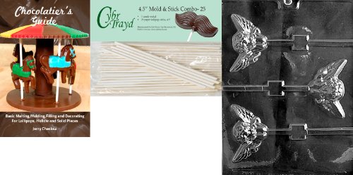 Cybrtrayd 'Large Cherub Pop' Valentine Chocolate Candy Mold with 25 4.5-Inch Lollipop Sticks and Chocolatier's Guide