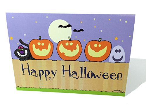-. Title : Happy Halloween - Pumkins on a Fence Greeting Card - 18 Cards/19 Envelopes