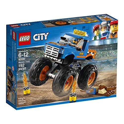 -. Binding : Toy -. Brand : LEGO -. EAN : 0673419279802 -. Feature : Includes a Monster truck driver minifigure / Features a colorful Monster truck with massive wheels, air scoop on the hood and working suspension, plus a buildable ramp / This children's toy is suitable for ages 6-12 / Monster truck measures over 4" (12cm) high, 5" (14cm) long and 3" (9cm) wide / Ramp measures over 3" (9cm) wide, 2" (6cm) deep and under 1" (2cm) high. -. IsAdultProduct : 0 -. Label : LEGO -. Manufacturer : LEGO -. Model : 6209746 -. MPN : 6209746 -. NumberOfItems : 1 -. PackageQuantity : 1 -. PartNumber : 6209746 -. ProductGroup : Toy -. ProductTypeName : TOYS_AND_GAMES -. Publisher : LEGO -. ReleaseDate : 2018-01-01 -. Studio : LEGO -. Title : LEGO City Great Vehicles Monster Truck 60180 Building Kit (192 Piece) -. UPC : 673419279802 -. Warranty : No Warranty