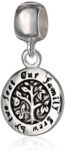 Two-piece set in sterling silver includes dangling round charm with engraved tree and text and beaded charm with inset crystals