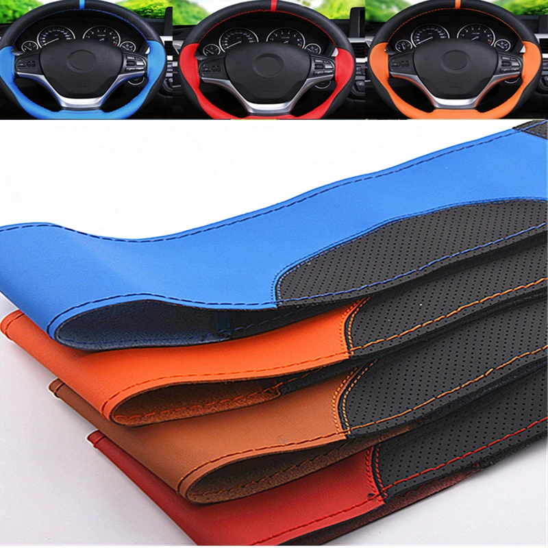 Color Of Car Steering Wheel Cover:Blue/Red/Orange/Brown Steering-wheel Covers