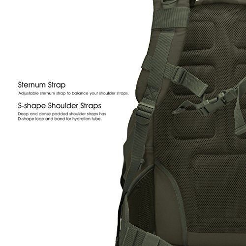 -. Feature : MATERIAL- 35 Liters. This military backpack is made of 600D polyester. / HYDRATION COMPARTMENT- This assault pack with hydration compartment and can hold a 2.5 Liter bladder, the tube is fed through the top of the bag near grab handle. / MOLLE WEBBING- This rucksack can hang on small items, or for attaching additional pouches or gear. Backpack also has 4 molle hooks underneath to strap a bedroll, tent or anything else. / WAIST BELT DESIGN- The waist belt of this bug out bag is stitched in, but you can slide them into the middle space behind the back padding support. It's a pretty snle fit and won't slide back out on its own. / DURABLE & MULTIFUNCTIONAL- This molle backpack with chest straps to cope with the weight so that it's well used as a 3 day assault pack,bug out bag,survival backpack,army backpack,trekking backpack or day pack. Suits for Hiking,Camping,Trekking,Shooting,Traveling,School or daily use. With 90 days limited warranty!