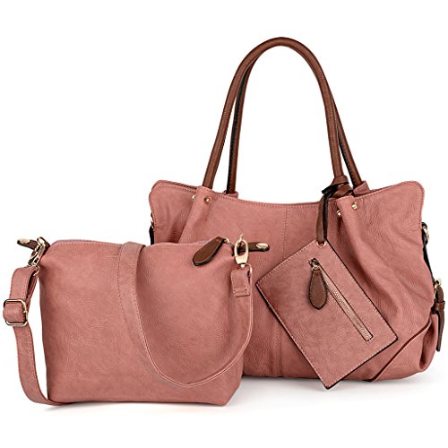 MULTI-FUCTIONAL - 3 pieces set handbag. 1 fashionable tote bag, 1 detachable single shoulder/crossbody purse and 1 wristlet wallet.