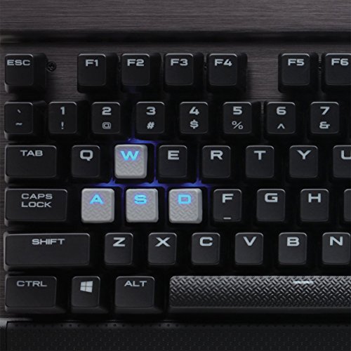 -. Feature : Aircraft-grade anodized brushed aluminum frame for superior durability / Advanced lighting control and large font keycaps deliver dynamic, vibrant backlighting / CUE support enables advanced macro and lighting programming for virtually unlimited game customization / 100% Cherry MX Red key switches with gold contacts for fast, precise key presses / 100% anti-ghosting with full key rollover on USB / Detachable soft-touch wrist rest and dedicated multimedia controls / USB pass-through port for easy connections / Textured and contoured FPS/MOBA keycap sets