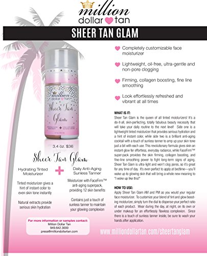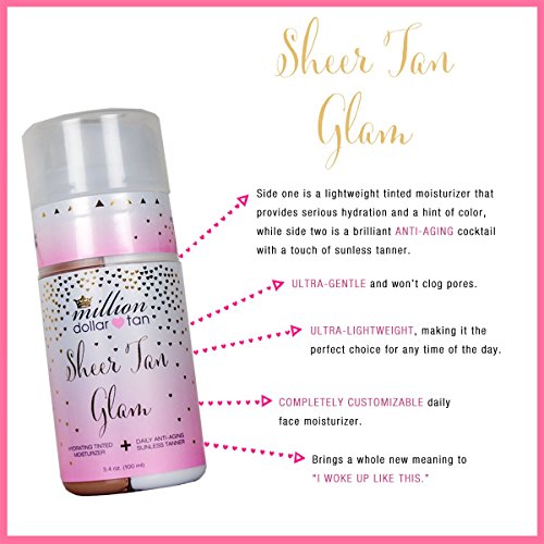 Tinted Moisturizer + Gradual Sunless Tanner for Face- Sheer Tan Glam by Million Dollar Tan - Dual Chamber Bottle Allows for Custom Application
