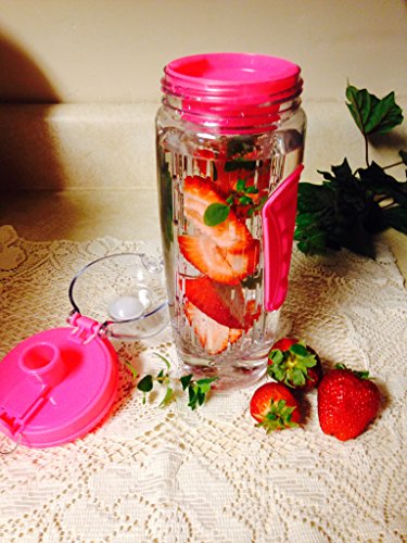 -. Feature : LARGE 32 OZ CAPACITY - Our infuser bottle has a large basket to infuse lots of fruits, more than enough room for water, ice / BPA FREE & FDA APPROVED - ENSURE YOUR HEALTH!! Made from PREMIUM DURABLE, eco-friendly, Eastman Tritan, shatter proof material, 100% BPA free and FDA-APPROVED which means we DO NOT use plastic that contains harmful chemicals and toxins. / EXCELLENT DESIGN - The best sturdy FLIP LOCK and sealed lid with extra latch for secure 100% seal and no leaks Easy to carry with grips on both sides / Extra convenient carry handle making it easy to carry with you anywhere you go - Fits in most car holders / 100% SATISFACTION GUARANTEED!!