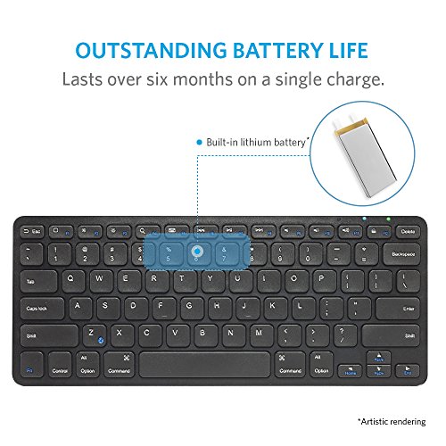 Anker Ultra Compact Slim Profile Wireless Bluetooth Keyboard for iOS, Android, Windows and Mac with Rechargeable 6-Month Battery (Black) B00PIMIUPW