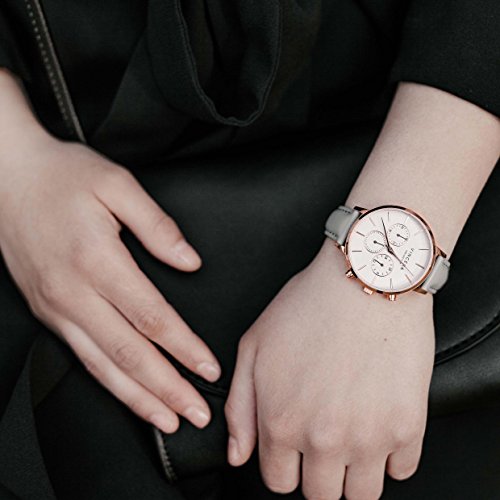 Vincero Luxury Women's Kleio Wrist Watch - Rose Gold + White Dial with a Gray Leather Watch Band - 38mm Chronograph Watch - Japanese Quartz Movement