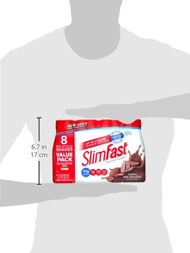 -. Binding : Health and Beauty -. Brand : Slim-Fast -. EAN : 0008346780013 -. Feature : Complete and balanced meal replacement shake for use as part of the SlimFast Plan / Live the dream! Satisfy your craving for up to 4 hours with 10g of protein, 5g of fiber and sinfully delicious creamy milk chocolate / Clinically proven to work and work fast - you can see real results in just 1 week with America's #1 favorite weight loss brand / SlimFast has helped millions of people across America lose those unwanted pounds faster than dieting alone and is the one of the most delicious ways to lose weight - with SlimFast It's Your Thing! / Each bottle gives you about a third of your recommended daily intake of the most essential vitamins and minerals! -. IsAdultProduct : 0 -. Label : Slimfast -. Manufacturer : Slimfast -. NumberOfItems : 1 -. PackageQuantity : 1 -. ProductGroup : Health and Beauty -. ProductTypeName : HEALTH_PERSONAL_CARE -. PublicationDate : 2015-03-27 -. Publisher : Slimfast -. ReleaseDate : 2015-06-12 -. Size : 8 Count -. Studio : Slimfast -. Title : SlimFast Ready to Drink Bottles, Creamy Milk Chocolate Meal Replacement Shake, 11-Ounces, 8 Count -. UPC : 008346780013