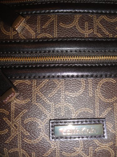• Interior CK logo lining has one zip and two slide pouches
