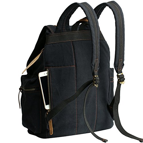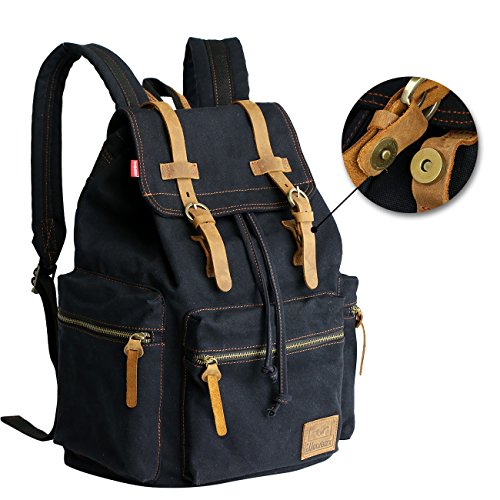 -. Feature : TOP-NOTCH MATERIAL CONSTRUCTION --- Classic backpack with superior durable red wash heavy canvas fabric body, seamless stitching, soft to touch and long-lasting durability, nice leather pulls attached to the zippers making it so much easier to grab hold of the zipper. / MULTIFUNCTIONAL POCKETS --- 1)Main storage compartment with a canvas front bag-flap to flip over;2)Giant interior space accomodates various gadgets.3)Outside 4 zippered compartments really do good job to hold articles conveniently;4)Inside a hug velcro padded compartment holds full sized notebooks;5)6 Wall pockets perform well (some with zippers). / CONVENIENT CLOSURE HANDLING - 1)Add-on DRAWSTING CLOSURE to secure this main compartment well;(2) Strong magnetic latches/clasps with a metal buckle decorative,easy to use strap closure;(3) Fluent zipper securing all the pockets;(4) Velcro Strap fix the full-size laptop inside padded pocket solidly. / COMFORTABLE ADJUSTABLE PADDED SHOULDER STRAP - This backpack features at wider shoulder strap to eliminates shoulder fatigue. Its flexible and extendable strap could be well adjusted into a proper and comfortable length as you wish. / UNISEX STYLE--- a must for your outdoor activity in your daily life,working as traveling backpack, schoolbag,bookbag,hiking bag,laptop bag, camping bag etc.