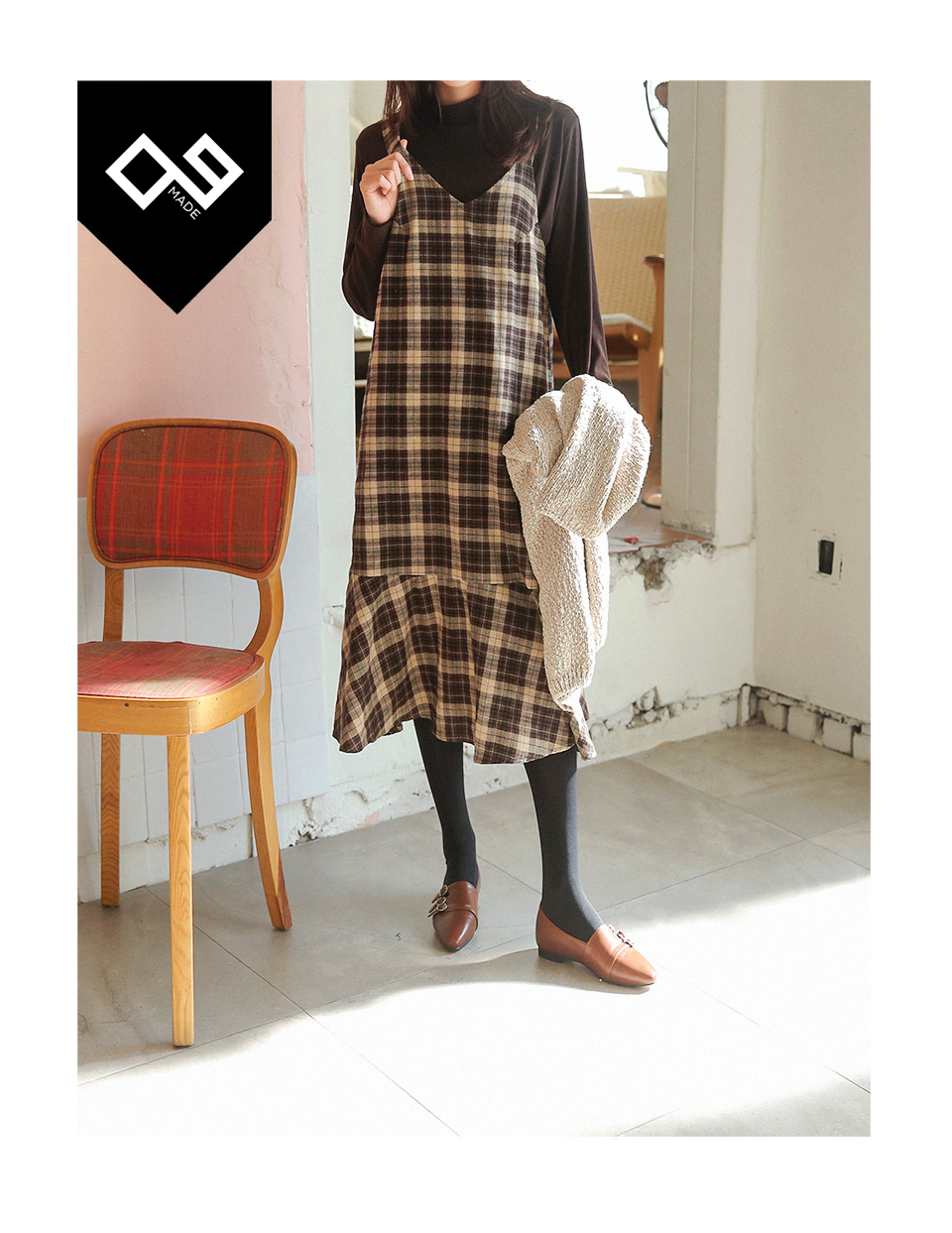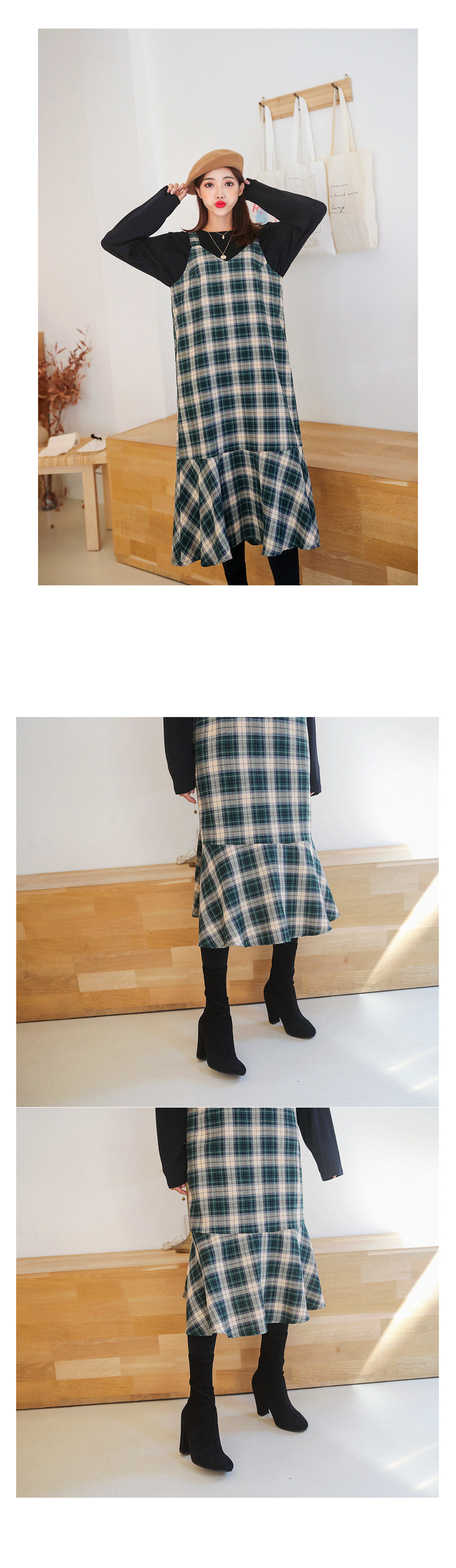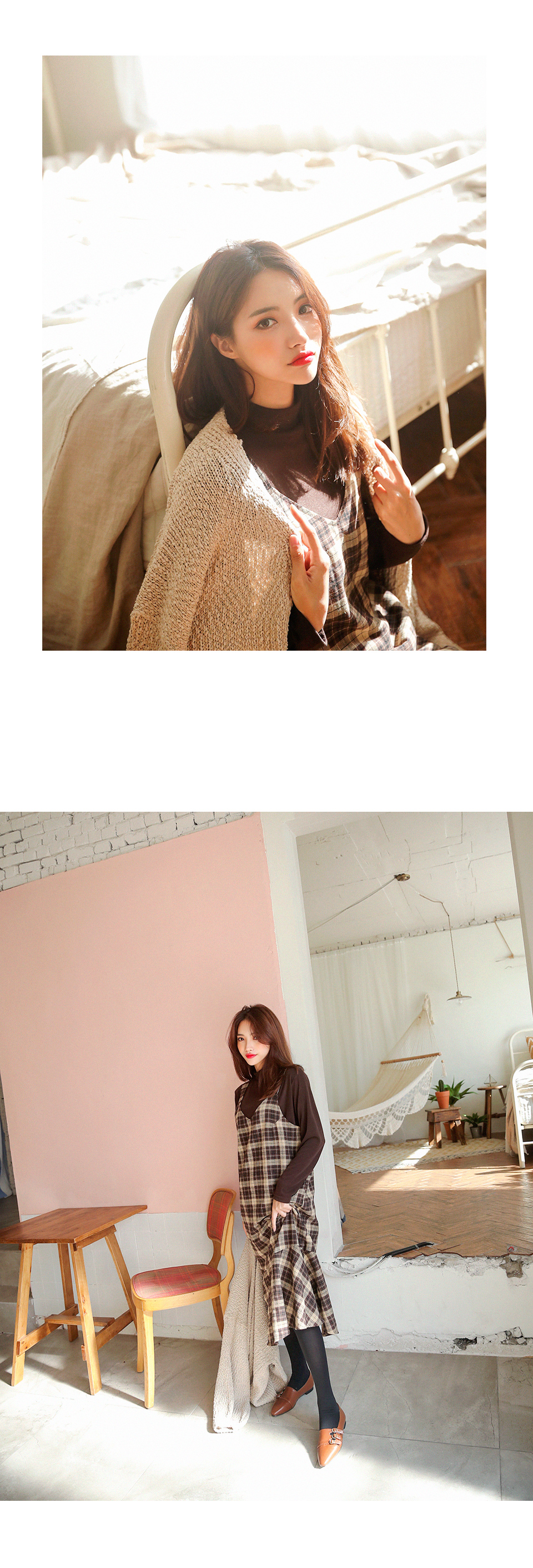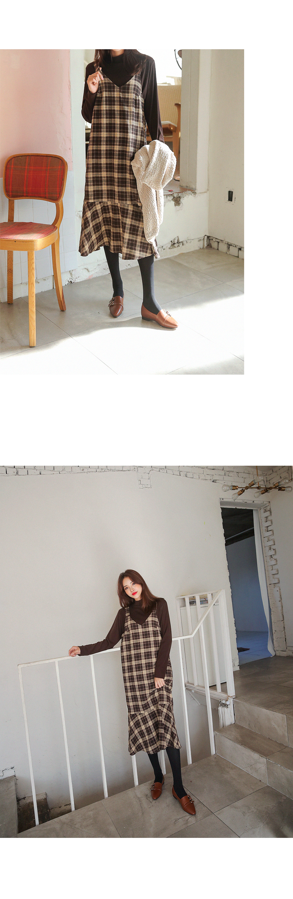 클래식한 체크에 따뜻한 색감이 어우러진 뷔스티에 원피스를 소개해드립니다 :D