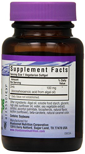BlueBonnet Natural Omega-3 Vegetarian DHA Vegetarian Softgels, 100 mg, 30 Count