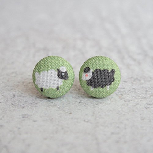 -. Title : Sheep Fabric Button Earrings