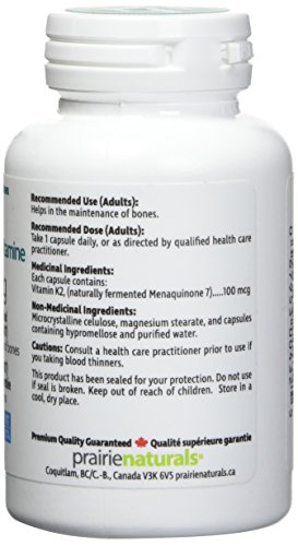 Prarie Naturals Vitamin K2 is made from Menaquinone 7 (MK-7), this is the best-absorbed & non-toxic form of supplemental Vitamin K2. As a co-factor in optimal calcium absorption, Vitamin K2 is shown to reduce risk of bone fractures. K2 is also an important nutrient for heart and arteries. K2 supports immune health and is essential to adequate blood coagulation. Build Strong Bones with Vitamin K2!Feature