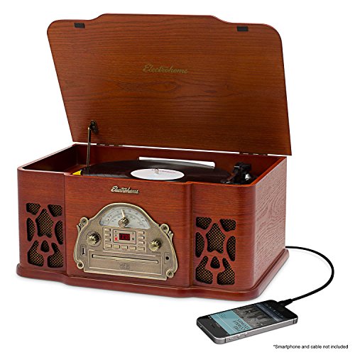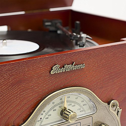 Electrohome Wellington Record Player Retro Vinyl Turntable Real Wood Stereo System, AM/FM Radio, CD, USB for MP3, Vinyl-to-MP3 Recording, Headphone Jack, AUX Input for Smartphones (EANOS502)