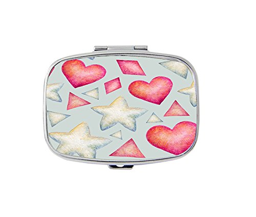Hearts, triangles and stars pill box/pill case--Rectangular pocket pill box/case---Two Compartments for Keeping Pill box/case