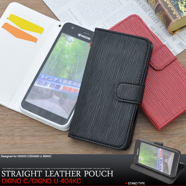 ストレートレザーデザインのDIGNO C/DIGNO U 404KC/KYOCERA S301用スタンドケースポーチ。