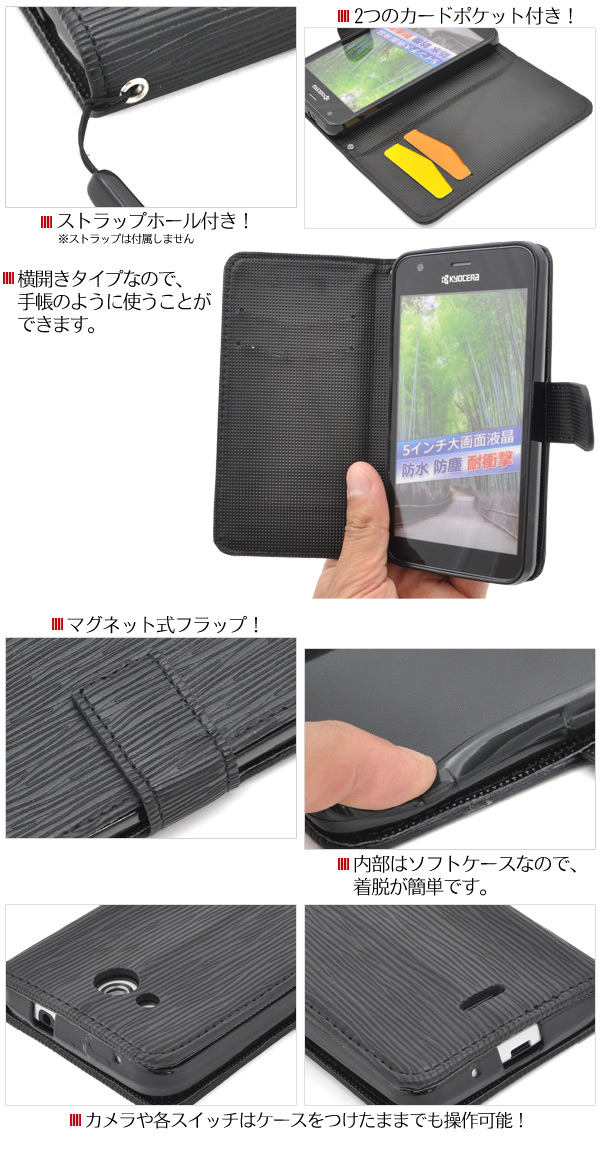 DIGNO C/DIGNO U 404KC/KYOCERA S301用ストレートレザーデザインスタンドケースポーチ