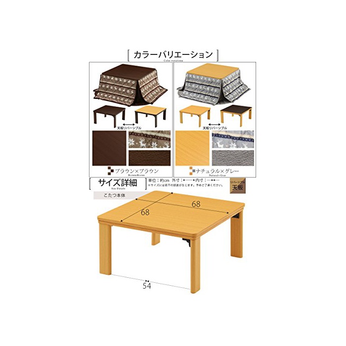 원본상품명: 完成品 掛け布付き 折りたたみ こたつ セット テブル ちゃぶ台 机 〔68×68cm〕