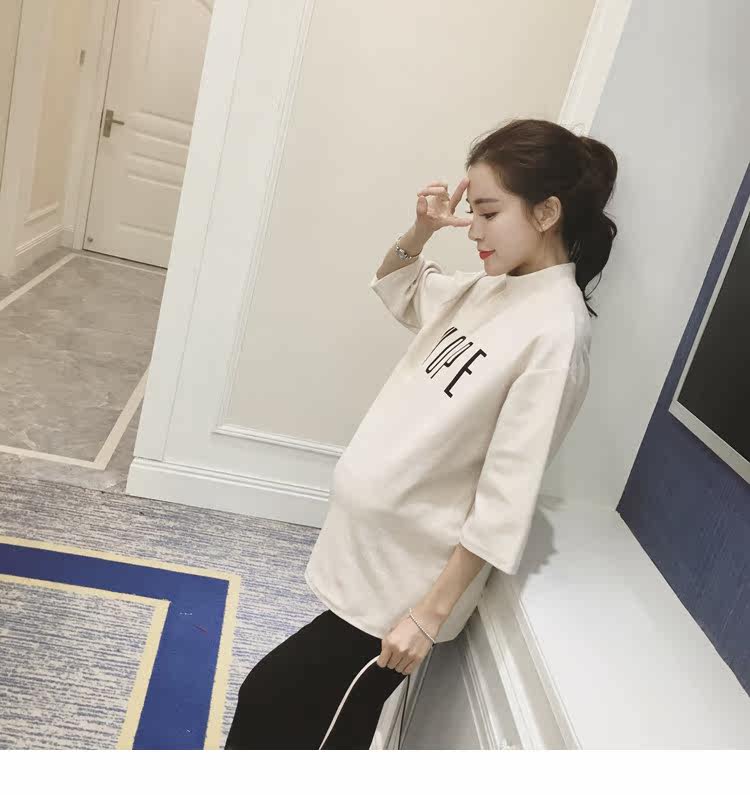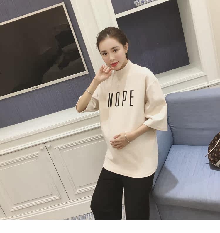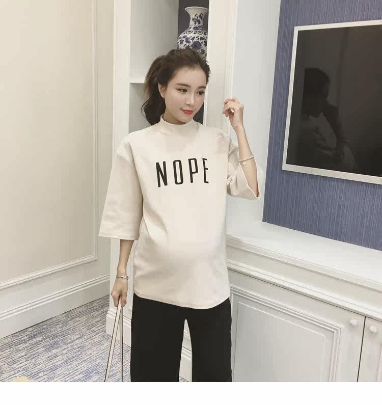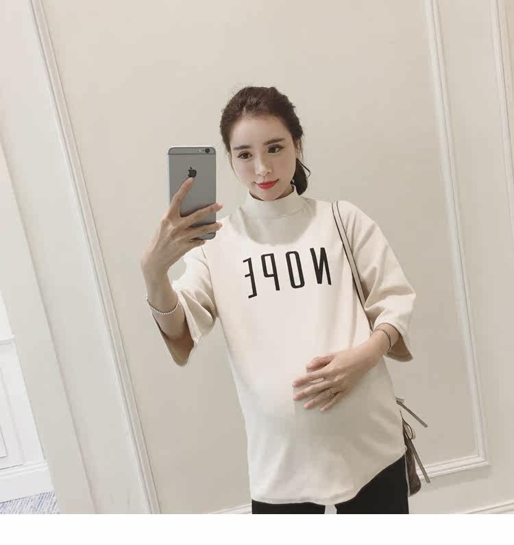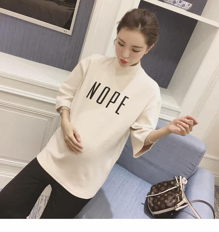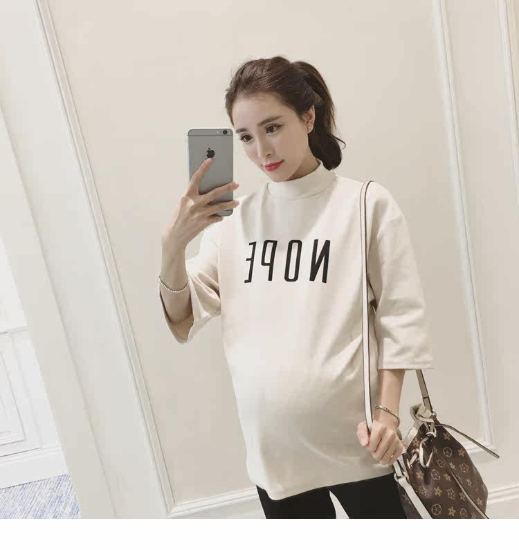 孕妇装上衣韩版春装新款女装半高领打底衫宽松七分袖印花T恤