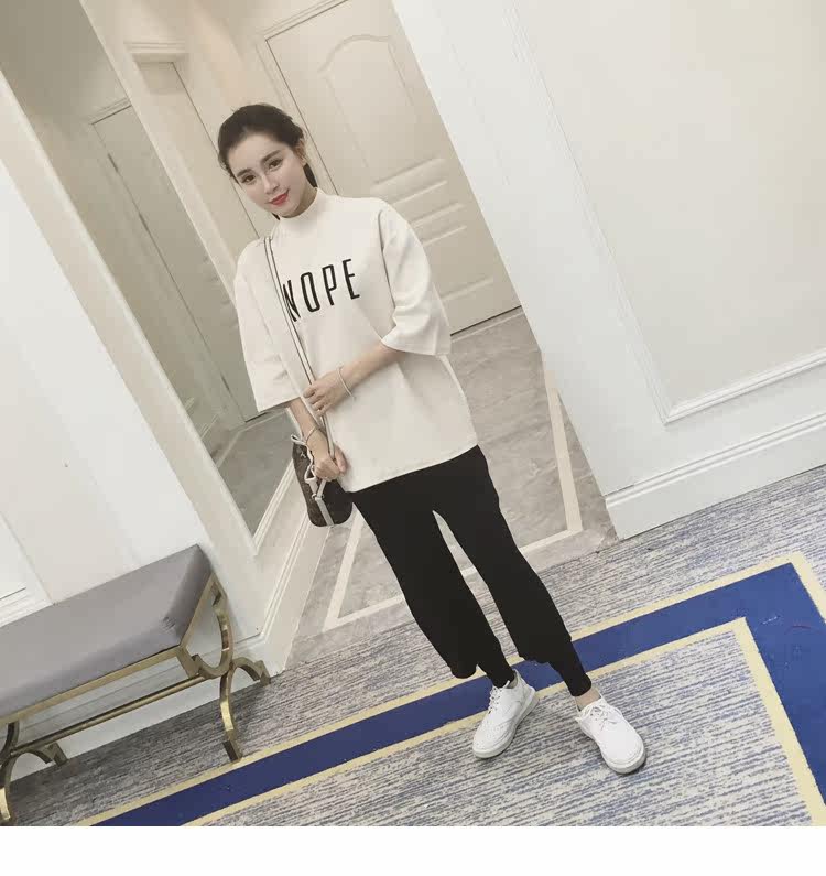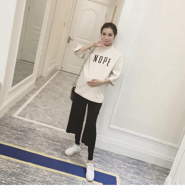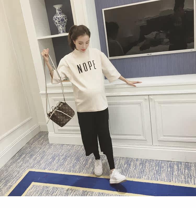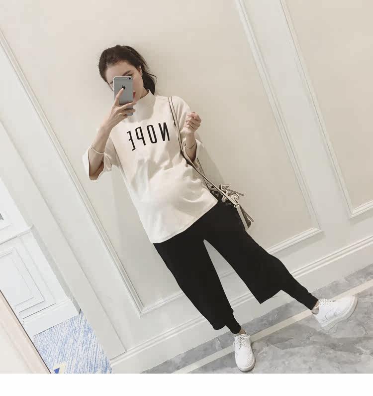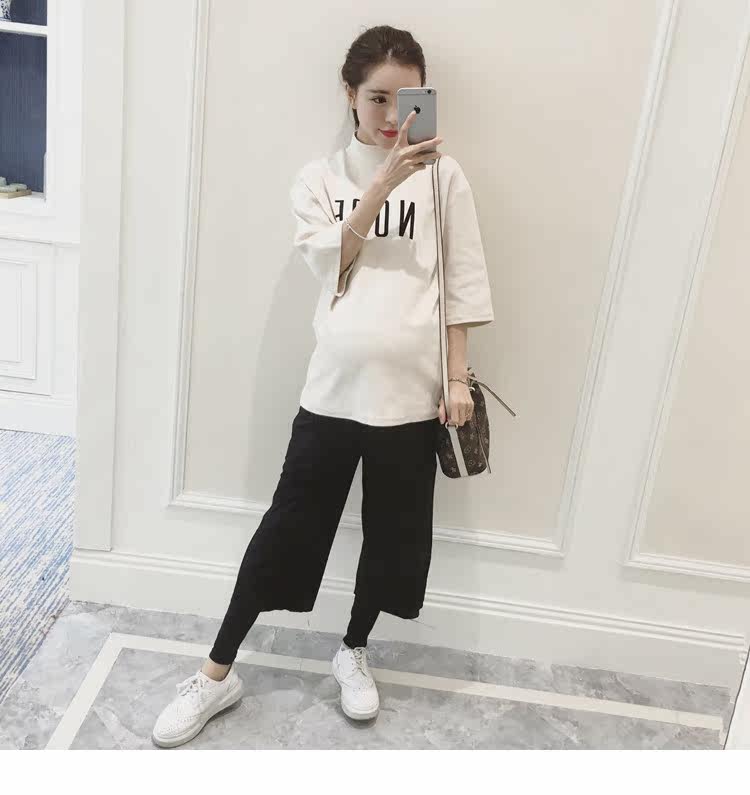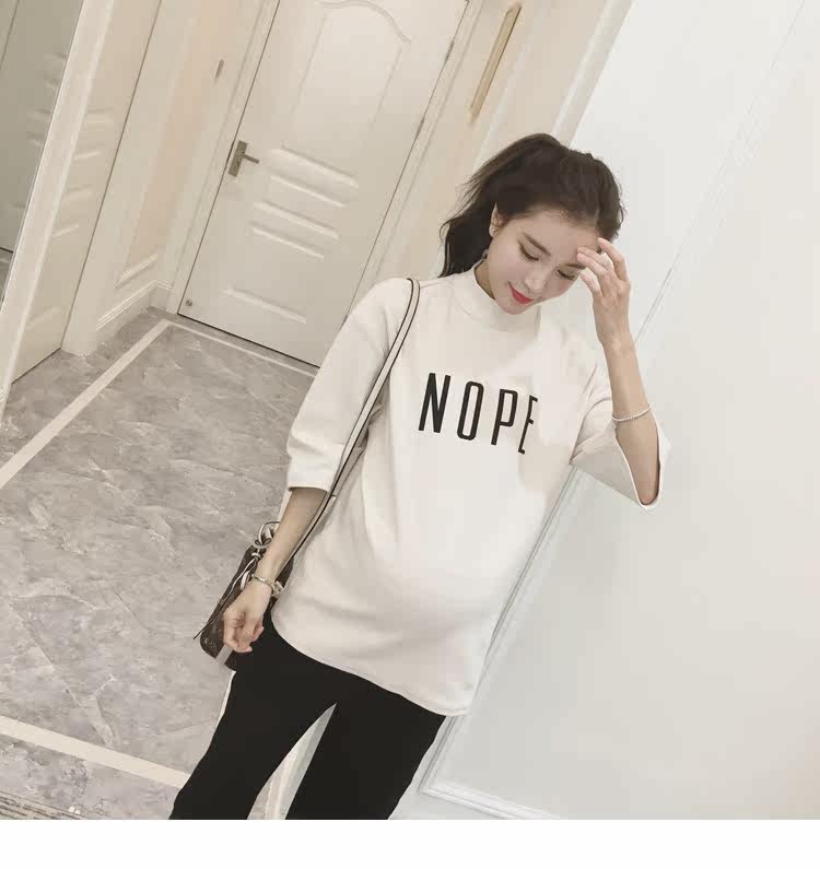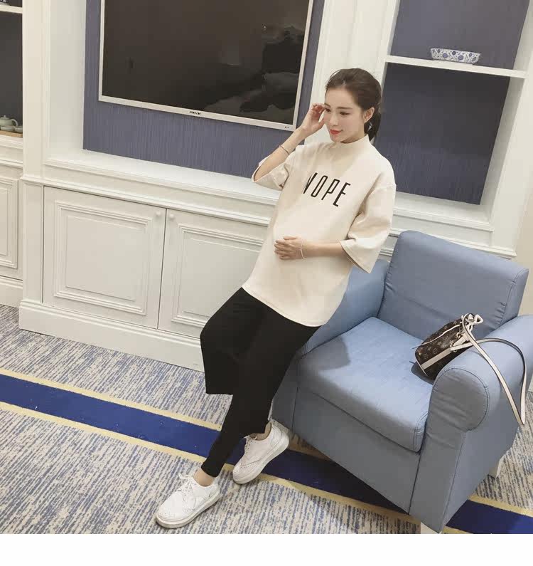 孕妇装上衣韩版春装新款女装半高领打底衫宽松七分袖印花T恤