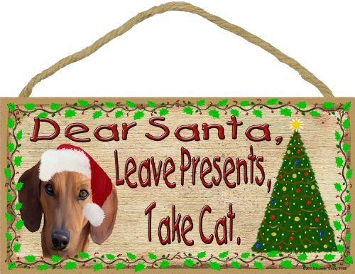 Dear Santa Leave Presents Take Cat Brown Dachshund Christmas Dog Sign Plaque 5"x10"