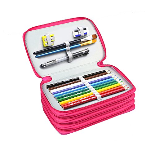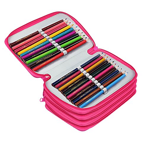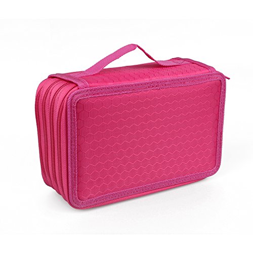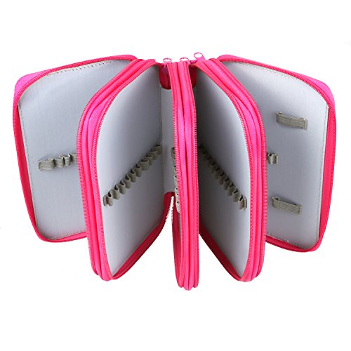 72 Slots Pencil Case, KinHom Handy Large Capacity Oxford Multi-layer Zipper Pen Holder Stationary Bags for Watercolor Gel Colored Ordinary Pencils Cosmetic Makeup Brush (Rose Pink)