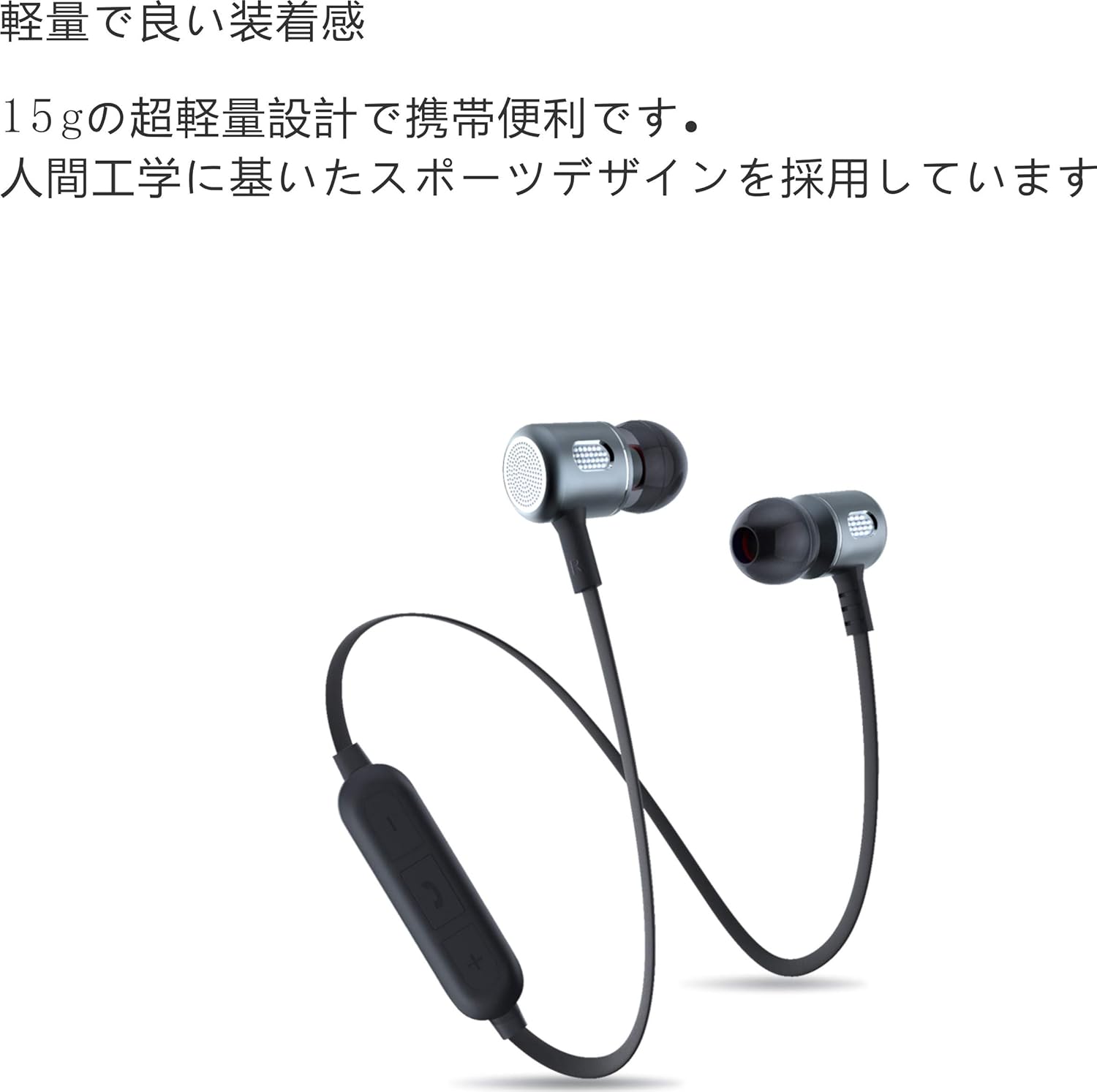 【軽量で良い装着感】15gの超軽量設計で携帯便利です。人間工学に基いたスポーツデザインを採用しています。耳の上部にフィットする柔らかなフックを装着しており、イヤホンを耳にしっかりと固定できますので、ランニングやジョギング、スケートなど運動時、また運転など外で仕事する際も外れることがありません。