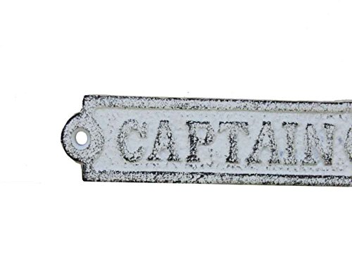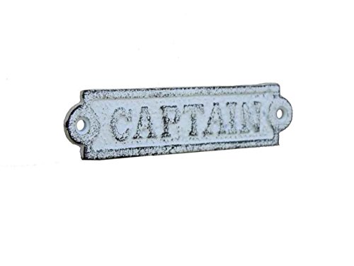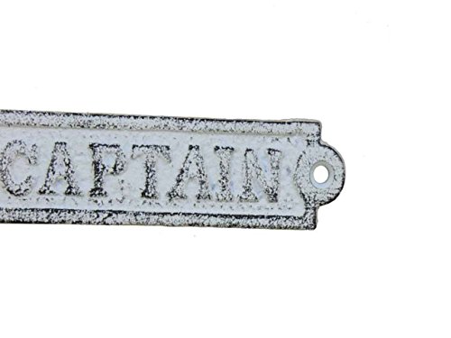 Hampton Nautical Cast Iron Captain Sign Metal Wall Plaque, 6", Whitewashed