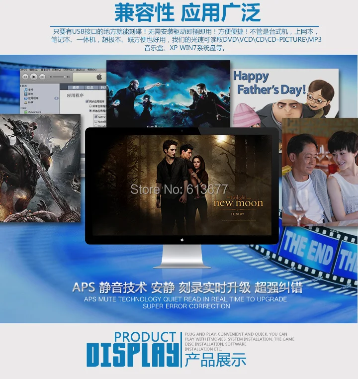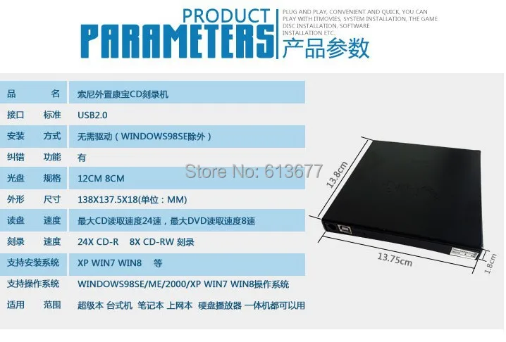 USB 2.0 Portable External Slim DVD/CD-RW Burner Recorder Optical Drive CD DVD ROM Combo Writer For?Computer PC