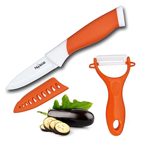 New England Cutlery 3 Piece Ceramic Paring and Peeler Set, 3", Orange