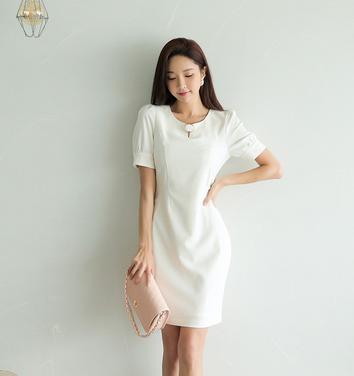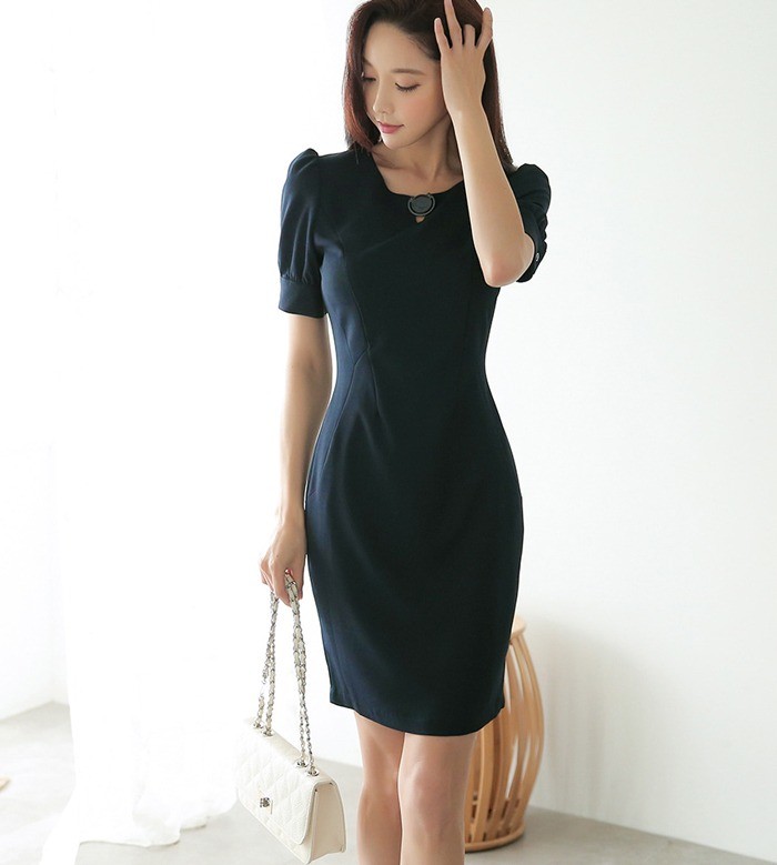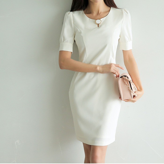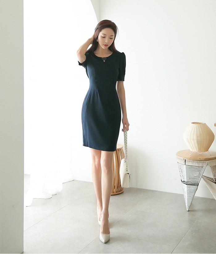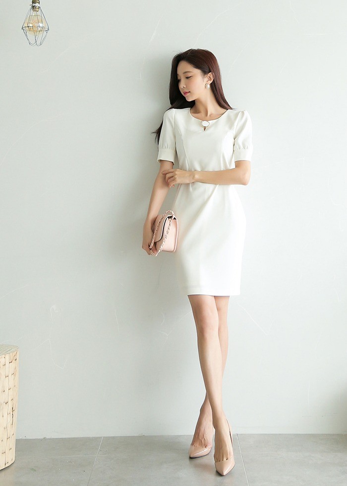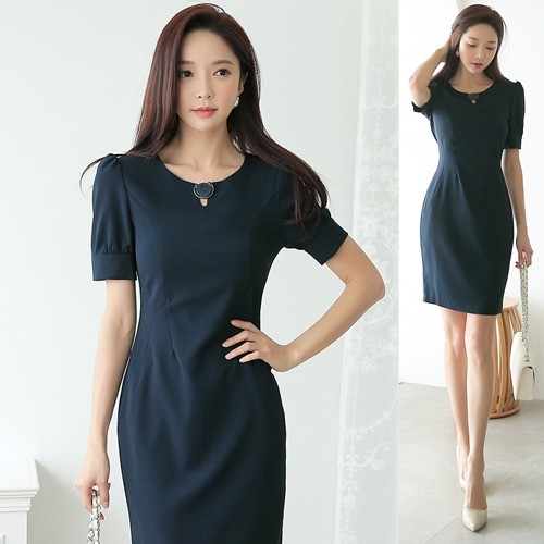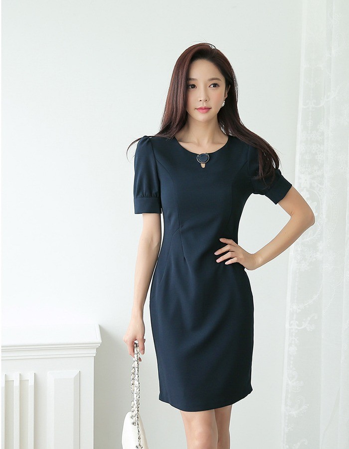商品名:ワンピース 無地 半袖 きれいめ タイトワンピース
