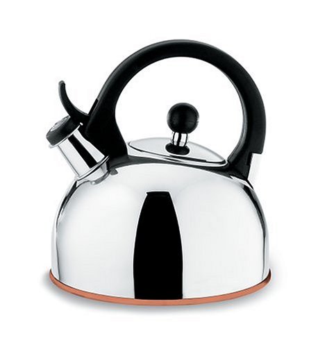 Copco Gismo 1-1/4-quart capacity 18/10 polished stainless steel tea kettle with copper bottom.