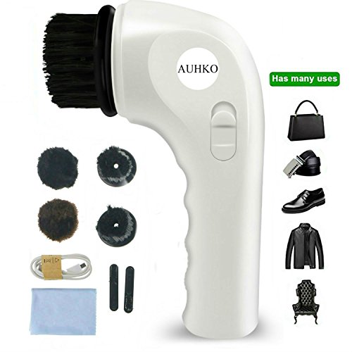 Electric Shoe Polisher,Auhko Portable Handheld Rechargeable Leather Shoe Cleaning Brush Kit Leather care Tool for Leather Shoes, Bags, Car Seat, Sofa and More