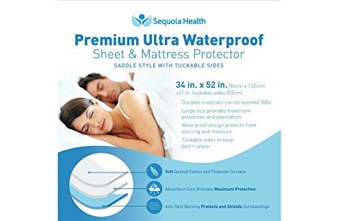 Saddle Style Absorbent Bed Pad with Tuck sides (34Wx52L) - Waterproof & Washable 300x for Incontinence Tuckable Underpad Protection fits Full, or...