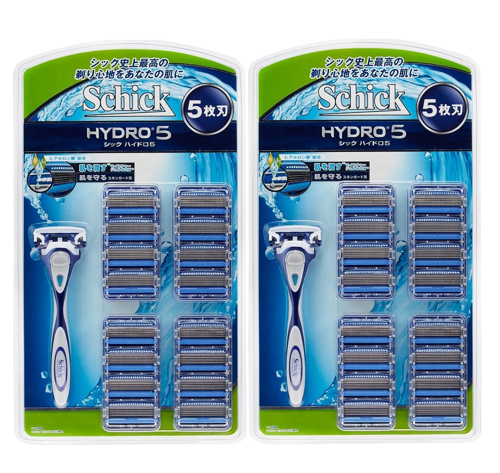ハイドロ5ホルダー本体に、替刃が17コ付いた大容量のお得なパック。 (うち1コは本体に装着済み) モイスチャージェルボックス(アロエ+ビタミンE配合)搭載でシェービングしながら驚くほど肌をうるおす。※皮膚学的な皮膚刺激テスト済 スキンガード付き5枚刃が肌の動きをコントロールして摩擦を軽減。 フリップ式トリマー仕様で、剃りにくいもみあげのキワも、ワンタッチで簡単に剃れる。 使用方法 ●替刃交換時にケガをしないようご注意ください。 (1)使用済み替刃をケースの空いている箇所に納め、ヘッドのボタンを前方へ押し出してはずします。 (2)新しい替刃とヘッドの中心を合わせ、カチッという音がするまで押し込みます。 (3)ホルダーをななめ上に押し上げて交換は完了です。 使用上の注意 ●カミソリは刃物です。お取り扱いにはご注意願います。 ●替刃の刃の部分には直接手を触れないでください。また、落としたり、強い衝撃を与えないでください。これらは、刃こぼれの原因となり、肌を傷めるおそれがあります。 ●カミソリを落とした場合は、替刃を交換してください。 ●小さなお子様の手の届かないところに保管してください。