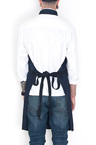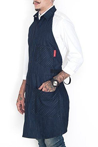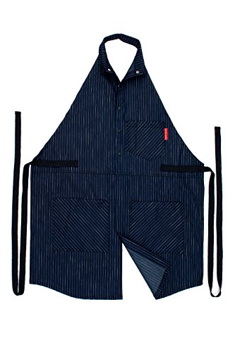 EXCLUSIVE BUTTON DOWN DESIGN – this apron has a shirt style with collar and it is made of resistant and light-weight 9 oz denim.