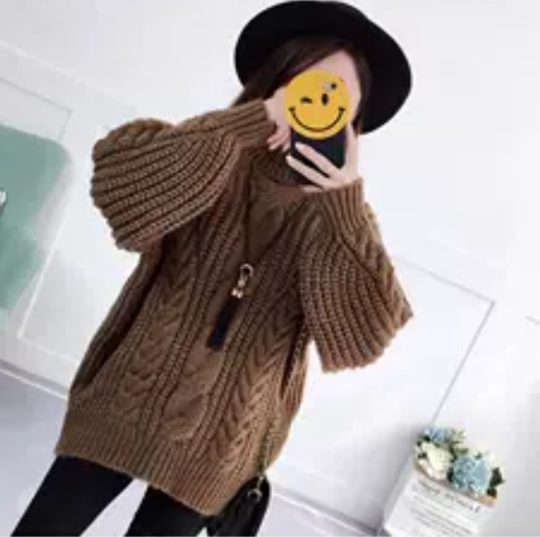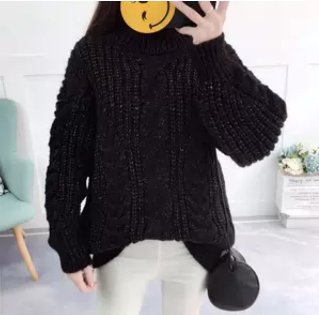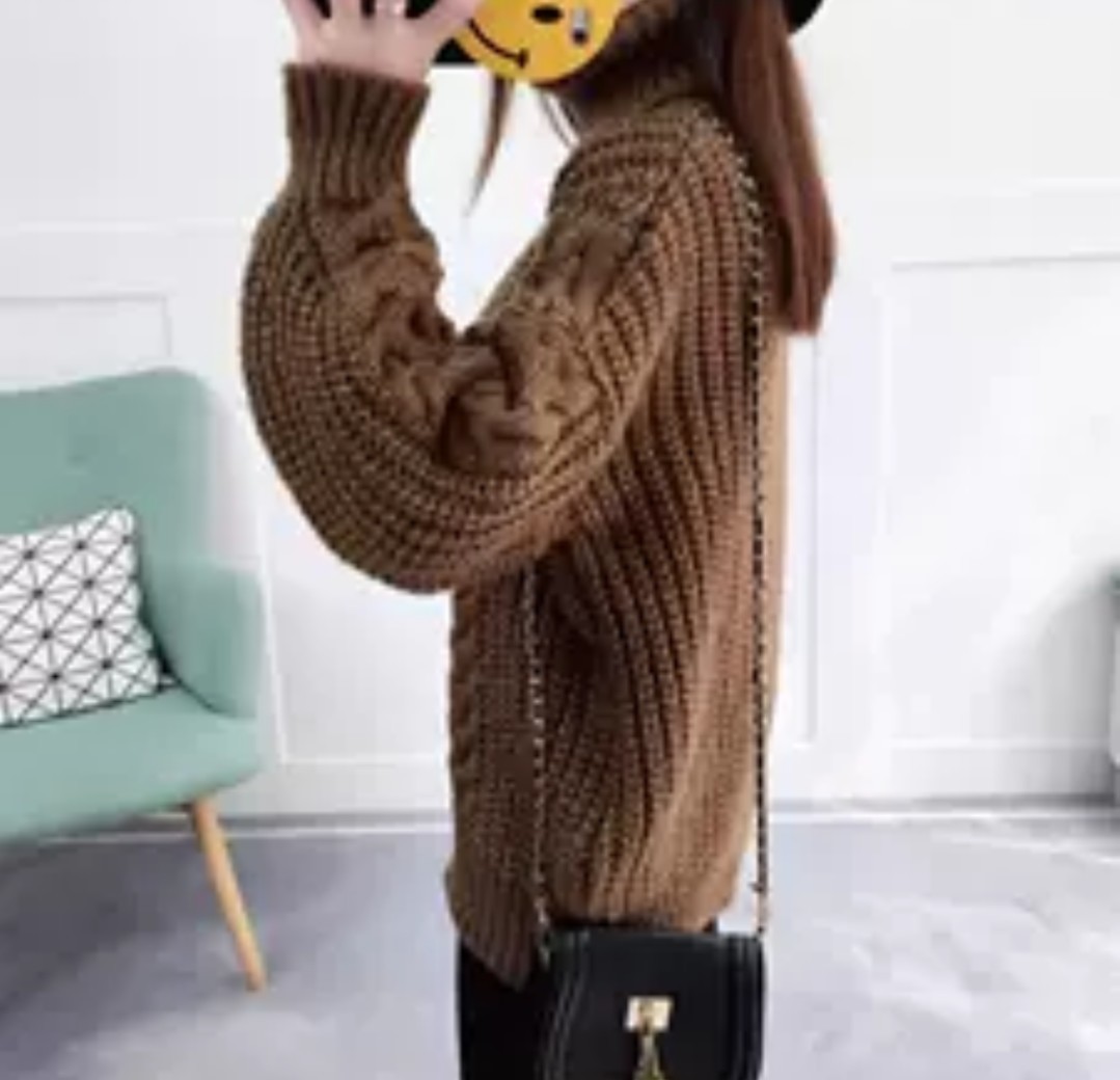 ざっくりシルエットのハイネックセーター あたたかなウール素材です。