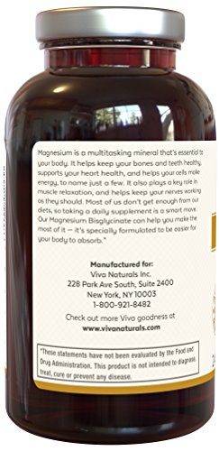 Viva Naturals #1 Superior Form of Magnesium When a chelate molecule binds magnesium with the amino acid glycine, the end product is magnesium bisglycinate chelate. This attachment prevents compounds like phytates breaking the bond, allowing for easy transfer through the intestinal wall. Research indicates this is the most highly absorbable form of magnesium, ensuring immediate uptake by the intestines and no stomach acid being required for breakdown. Viva Naturals only uses the most superior form of magnesium and stands behind the quality and purity of our product.