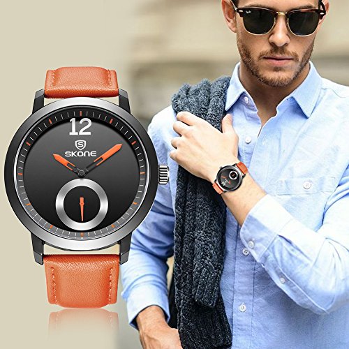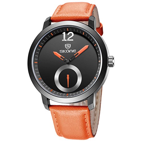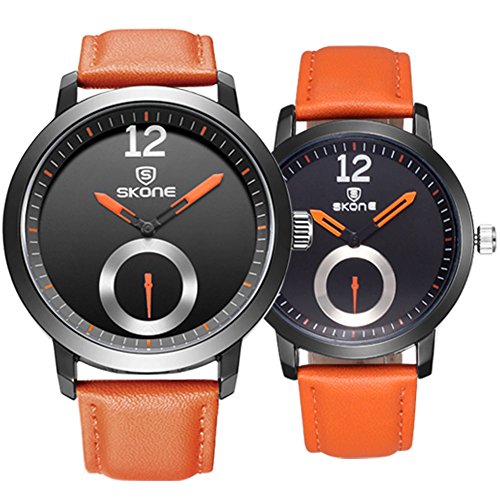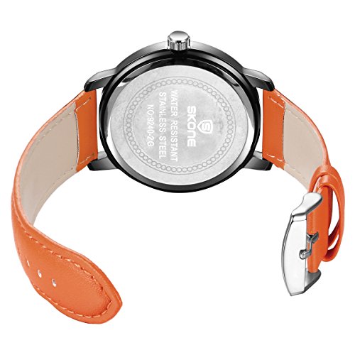 - ★QUALITY - Orange PU leather band; hardlex drystal lens; precise quartz movement; buckle clasp , water resistant to 3ATM or 30 meters (100 ft)