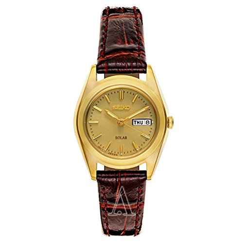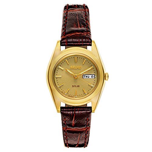 Seiko, Core, Women's Watch, Stainless Steel Yellow Gold Plated Case, Leather Calf Skin Strap, Solar Powered Quartz, SUT120