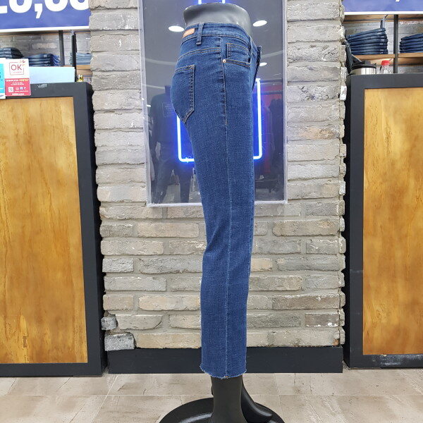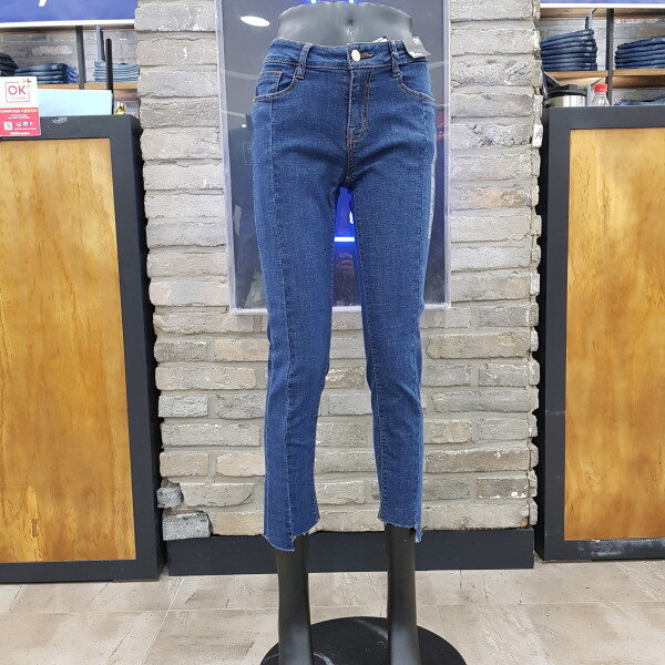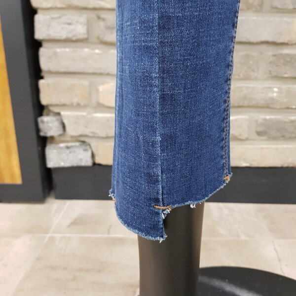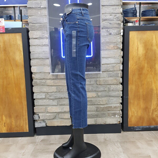 미디엄 인디고 바이오 워싱의 크롭 스트레이트 핏. 앞중심에 절개가 있어 전체적으로 슬림해보임. 밑단은 언밸런스 커팅되어있어 발목이 돋보이는 디자인. 데일리 아이템으로 유용한 제품.( 여성사이즈->64(25),67(26),70(27),73(28),76(29),79(30)입니다.)