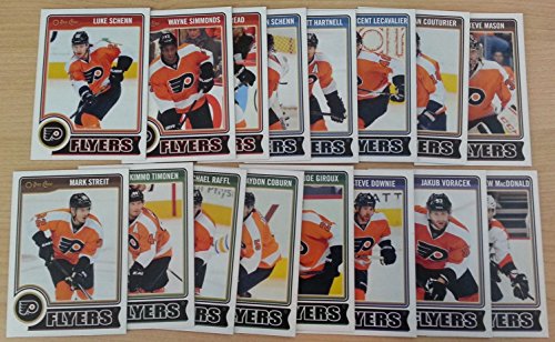 Philadelphia Flyers 2014 2015 O Pee Chee NHL Hockey brand new factory sealed 16 card licensed team set made by Upper Deck including Luke Schenn, Wayne Simmonds, Matt Read, Brayden Schenn, Scott Hartnell, Vincent Lecavalier, Sean Couturier, Steve Mason, Mark Streit, Kimmo Timonen, Michael Raffl, Braydon Coburn, Claude Giroux, Steve Downie, Jakub Voracek and Andrew MacDonald.