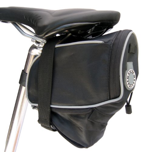 ReleaseDate : 2010-03-19 Studio : Banjo Brothers Publisher : Banjo Brothers Binding : Sports Product Description Banjo Brothers 01009 Mini Seat Bag is a small seat bag (33 cubic Inches) sized for a tube, tire levers, patch kit and mini tool. Perfect for road bikes. It features 360 degrees of reflective accents, a heavy-duty 840 denier nylon construction, and a wide-opening design for easier access. The three-point mounting allows for a secure fit on the back of your bike. 0