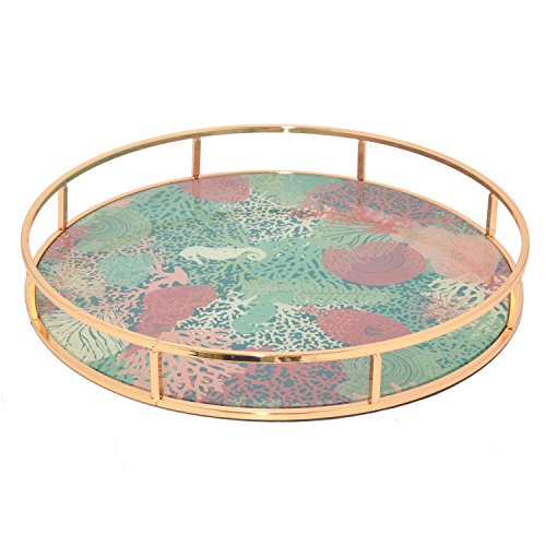 Benzara HRT-45492 15" Rose Golden Metal Tray with Flower