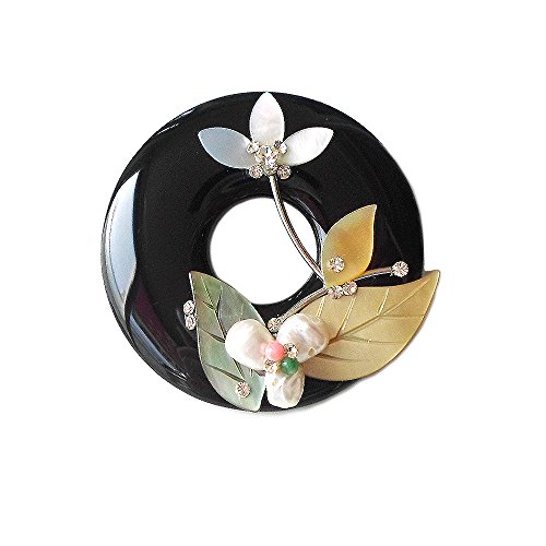 -. Title : Hanabe Women Handmade Onyx Mother of Pearl Cultured Pearl Beaded Flower Classic Brooch Pin Black